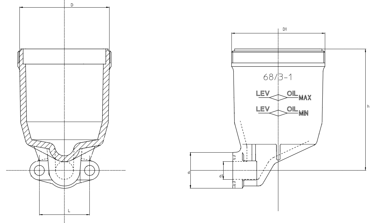 Serbatoio olio per utilizzo lubrificazione a caduta. Prodotto in materiale termoplastico TROGAMIT. Resistenza ad agenti chimici, calore ed usura. Livello esterno, possibilità di avere livello interno elettrico.